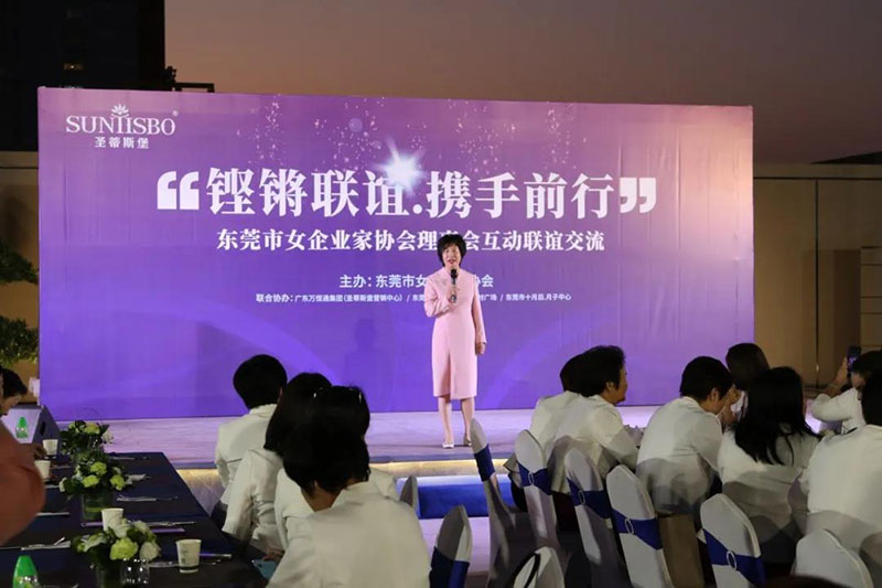 接下来,东莞市女企业家协会理事会会长叶小红女士上台发言,她表示非常感谢公海710jcjc集团集团举办此次联谊交流会,同时,对我们的产品和企业文化给出了很高的评价。她号召东莞市女企业家协会以后要更多的举办此类交流联谊活动,以此增进会员企业之间的联系和了解,为未来进一步交流发展开创新局面!她希望我们能携手同行,强强联手,共赢未来,共创新辉煌!